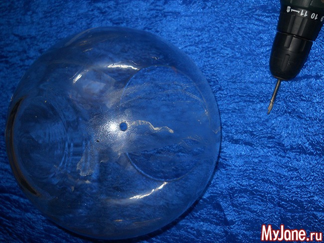 Прежде всего, требуется просверлить отверстие на боку вазы, чтобы шнур не мешал, когда лампа стоит на столе. Были опасения, что стекло лопнет, взорвется, или растрескается. Но смело взявшись за работу, так как лучше делать и ошибиться, чем не делать ничего, я приступила.