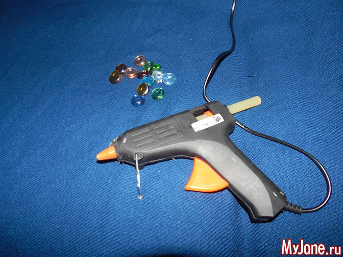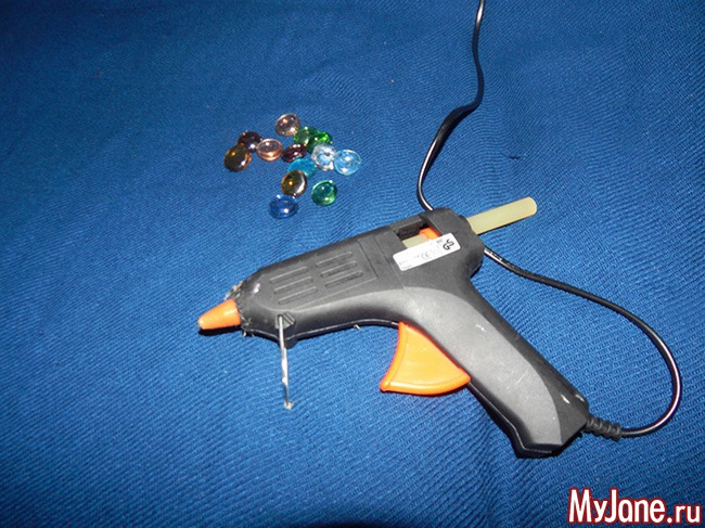 Соединяем шнур с патроном, у меня для этого использовались знания мужа, так как необходимо правильно все соединить, чтобы не было замыкания. Лучше доверить этот процесс профессионалу. Закрепляем патрон так, чтобы он не касался дна, для этого вокруг с двух сторон заливаем отверстие с помощи клеевого пистолета.