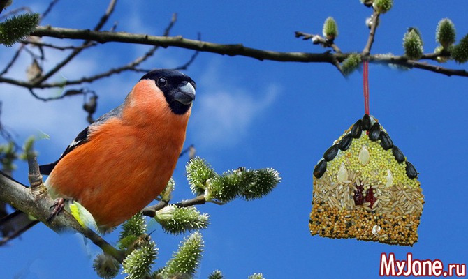 Поздравляю! У вас получился отличный подарок для птиц! Предлагаю теперь повесить эту красоту на своем дачном участке или в ближайшем парке или своем дворе и наблюдать за тем, как часто гостят у вас птицы!