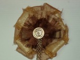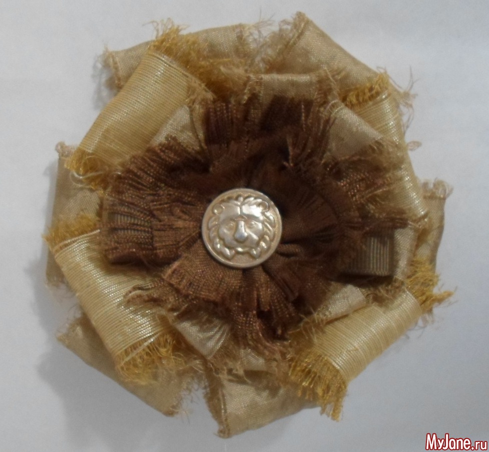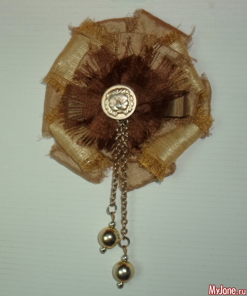 Эта брошь изготовлена мной для девушки, которая обожает аксессуары с изображением львов. Обнаружив в закромах винтажную металлическую пуговицу со львом, я занялась подбором подходящей ткани и дополнительных аксессуаров для изготовления броши на основе текстиля.
