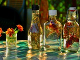 Итак, что у нас растет на грядке пряных трав. Конечно же, базилик, шалфей, чабер, мята, иссоп и прочее, прочее. Считаю, что сочетать можно несколько любимых компонентов при настаивании одной порции уксуса, тем самым экспериментировать и изобретать новые вкусы, которые будут радовать вас и ваших близких за совместным столом. Обычно я беру вот такие небольшие бутылочки, желательно делать маленькими порциями, но всякого разного побольше. Собираю «нужные добавки» с грядочки, мою и помещаю их в сосуд, затем просто заливаю 3 или 9% уксусом и даю настояться около 10 дней на подоконнике, это, так называемый холодный способ. Его преимущество перед горячим способом вижу в том, что не нужно кипятить травы. По истечении данного времени ваши шедевры будут готовы!