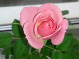 Розочка с фотографии была куплена в обычном магазине и подарена хозяйке. Она сильно пожелтела, но пошли молодые листики, и хозяйка обрезала все ветки, кроме молодых с почками. Сама розочка оказалась неприхотливой, даже с минимальной подкормкой продолжает расти и цвести. Растет она на достаточно теплом балконе с пластиковыми окнами.