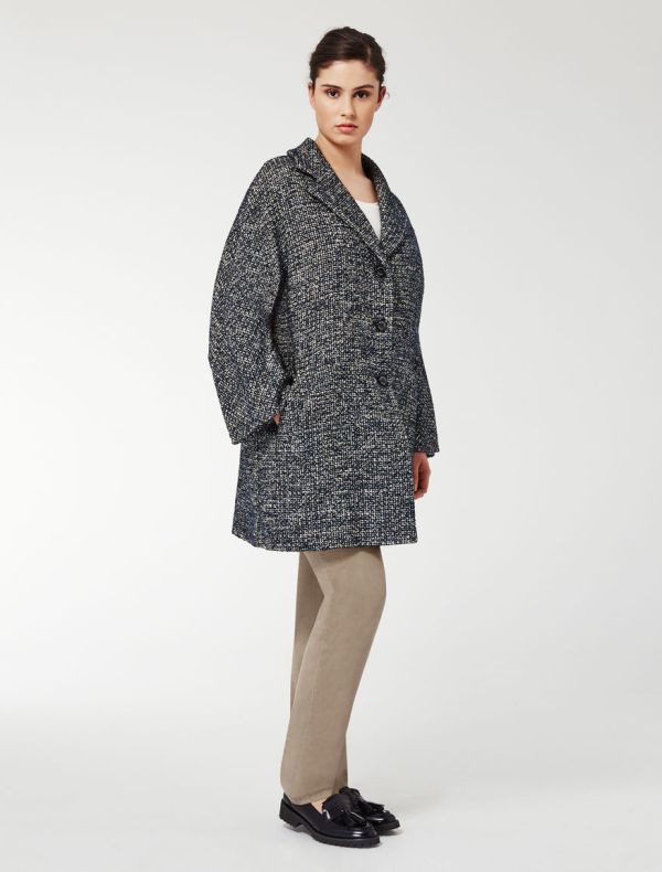 Укороченное пальто с округлой линией плеча и широкими рукавами.