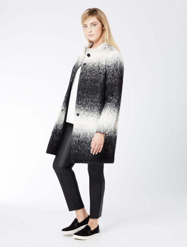 Модель из ткани с ворсом, в которой черно-белые переходы создают интересную фактуру.