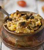Переложить в смазанную маслом и посыпанную сухарями сковороду, запечь в предварительно разогретой духовке в течение 40-50 минут.