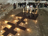 Уже ближе к ночи начинается водосвятие – важное событие Крещения Господня и Богоявления. Как только в храме заканчивается служба, православные совершают крестный ход в сторону водоема, где заранее вырубают во льду лунку, называемую Иорданью, в форме креста.