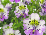 Соцветия у схизантусов расположены на верхушках стеблей, их так много, что не видно зелени. Форма цветка схизантуса неправильная: чашечка имеет глубокий разрез, который переходит в венчик с двумя губами. Лепестки цветов схизантусов бывают самой разнообразной окраски, они покрыты всевозможными точечками, черточками и полосками.