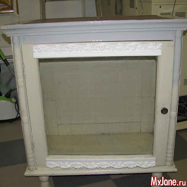 Протираем витрину от пыли и грязи, и грунтуем первый слой. Для этого в белую краску добавляем черный грунт до получения светло-серого цвета. Тщательно прокрашиваем все стороны витрины, и внутреннюю часть. Краска сохнет быстро, но необходимо подождать сутки. Затем наносим еще слой уже белой акриловой краски, и также ждем сутки. Окончательный третий слой должен закрасить все неровности и следы кисточки.