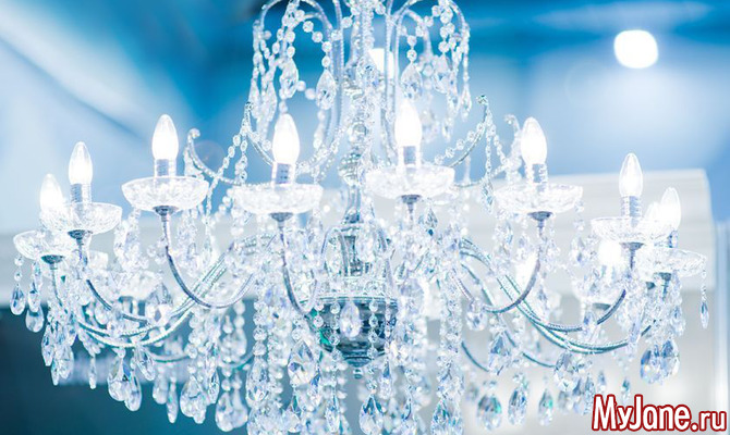 На этой картинке вы видите люстры для гостиной. Здесь часто используются формы шара или полусферы. Для их дизайна характерно обилие мелких хрустальных деталей, бусин, подвесок, в сочетании с металлом: бронзой, латунью.