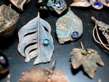 Колечки, броши, сережки - увековеченные металлом листья, семена, веточки, перышки и даже кусочки коры, мха...