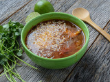 При подаче на стол в каждую тарелку положить кусок сваренной баранины, сметану. Посыпать суп измельчённой зеленью укропа и петрушки.