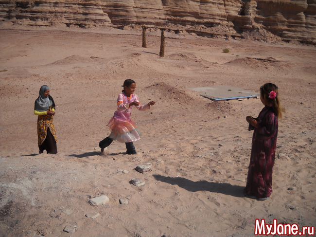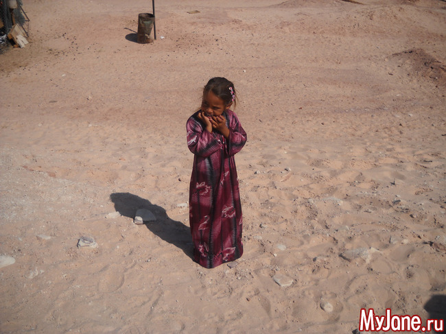Неподалеку от этого исторического местечка расположен небольшой бедуинский поселок, и, конечно же, местные детишки, увидев туристов, сразу же оказались тут как тут! Интересно же все-таки посмотреть на нас, белокожих!