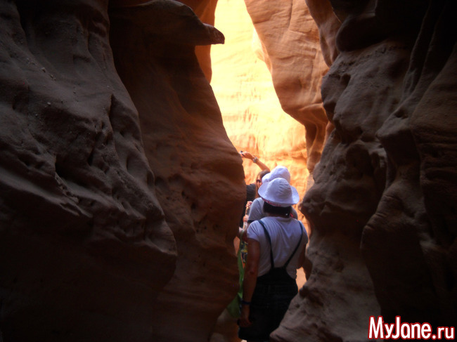 Довелось нам пройти и по узенькому ущелью, ширина которого не позволяет разминуться даже двоим путникам. Кстати, это и есть самый узкий в мире каньон! Сначала было немного страшновато – казалось, что скалы вот-вот сомкнутся, и пути назад уже не будет.
