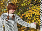 Повторить этот ажурный блузон по силам даже совсем неопытной мастерице. Для него не нужны выкройки и расчеты, плотные части связаны столбиками без накида, основной узор – очень пластичная косая сетка – связан столбиками без накида и воздушными петлями. Пряжу можно использовать любую, тонкую, толстую, хлопковую, синтетическую, шерстяную, фантазийную. Из тонких блестящих ниток получится прекрасное дополнение к вечернему наряду, из пряжи средней толщины – повседневная вещь, из толстых ниток – замена шали или пончо.