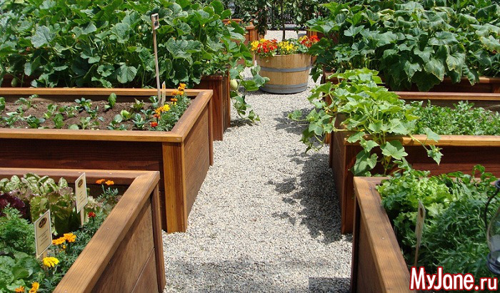 Что же касается удобства и практичности, возни и рутинного труда с высокими, «ленивыми» и «умными» грядками намного меньше, а урожайность больше. Можно обеспечить подход к грядке с любой стороны, благодаря же дорожкам-проходам между ними, усыпанным гравием, мульчей из древесной коры или вымощенным каким-либо покрытием (плитка, брусчатка, булыжники, каменные плиты, фрагменты древесины и т.д.), о грязи на огороде можно забыть.