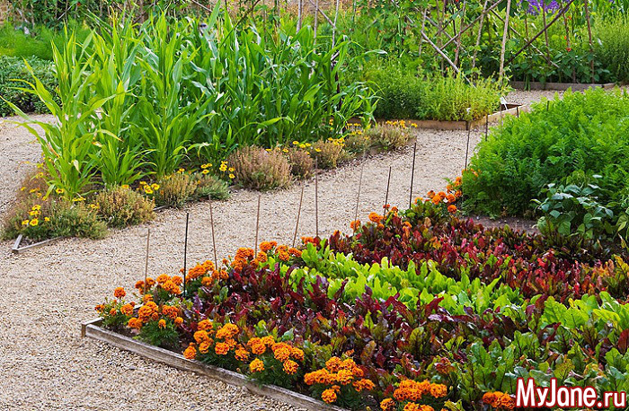 Перечисленные виды грядок иногда обрамляют цветами. Это не только красиво, но и полезно: бархатцы