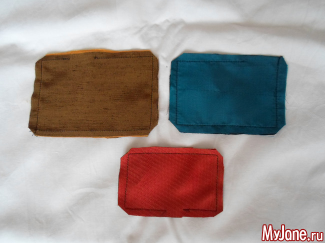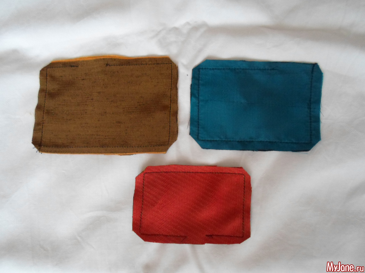 5. Выворачиваем прямоугольники через оставленное для этой цели отверстие. Выравниваем швы и уголки. Проглаживаем утюгом. Отверстие для выворачивания зашиваем потайным швом. При желании можно отстрочить края прямоугольника на швейной машинке.