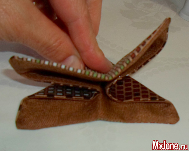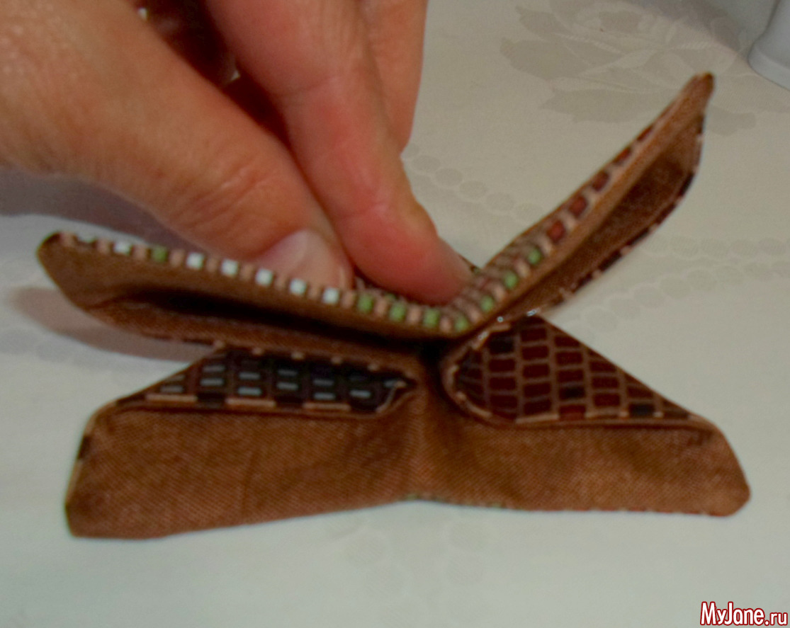 подворачиваем уголок и закрепляем несколькими стежками, чтоб сохранить форму.