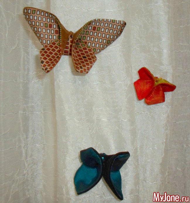 Для изготовления бабочек подойдут практически любые ткани, разной фактуры и расцветки, интересны различные сочетания - цветной ткани и однотонной, матовой и блестящей. Мир бабочек очень разнообразен как по цвету, так и по размерам. Красивые текстильные бабочки получаются из шелковых мужских галстуков благодаря их расцветке и благородному блеску натурального шелка.
