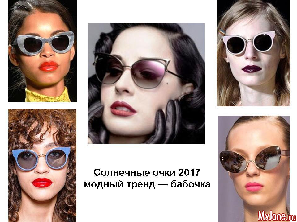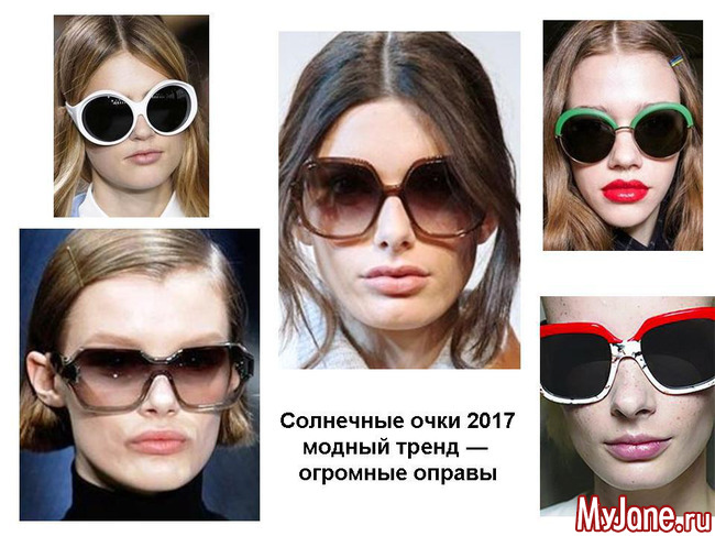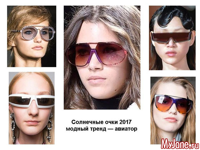 Летом 2017 продолжают развиваться тенденции, которые уже известны с прошлых сезонов. Это солнцезащитные очки в форме бабочки, затем так называемый фасон авиатор, а также модели с огромными оправами, закрывающими пол лица.