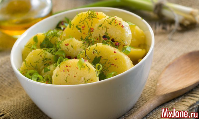 В большую и глубокую миску выложить картофель, добавить обжарку из лука и зелени, накрыть миску крышкой и хорошенько встряхнуть блюдо! Подавать на стол с малосольными огурчиками!