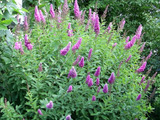 Розоватые цветки, собранные в соцветия появляются в июне. Цветёт куст всё лето до сентября.
