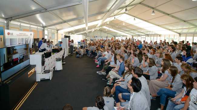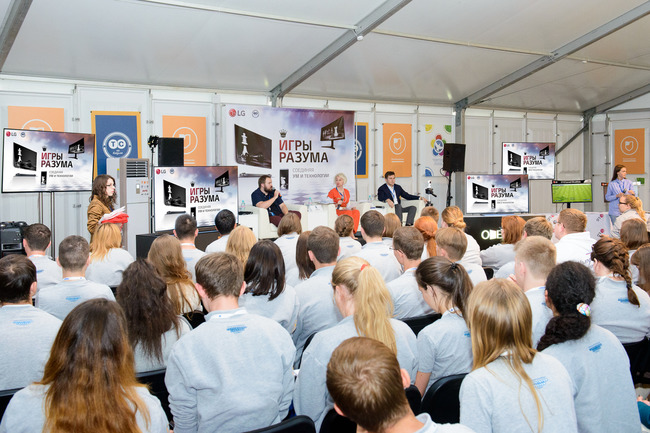 Начало образовательных программ от LG было положено на следующий день, 22 июля – интересной лекцией-конференцией «Игры разума: соединяя ум и технологии», с участием Татьяны Шахнес, Сергея Карякина – гроссмейстера, чемпиона мира по блицу, и Wylsacom – видеоблогера Валентина Петухова, ведущего известного канала на YouTube о современных технологиях. Сергей рассказал молодёжи о том, какими качествами должен обладать шахматист, как умение предсказывать ходы и выстраивать стратегии помогают ему в обычной жизни, о том, что шахматы – это спорт, и шахматист должен быть в отличной физической форме, о своих самых интересных играх, и о том, как современные технологии могут сочетаться и взаимодействовать с одной из самых интеллектуальных игр. Кроме того, можно смело сказать, что Сергей Карякин имеет прямое отношение к возрождению шахматных игр в России – начав занятия шахматами в совсем юном возрасте, всего в 12 лет Сергей стал самым молодым гроссмейстером в истории, и был внесён в Книгу рекордов Гиннесса.