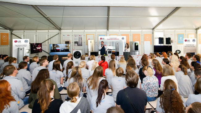 Кроме того, молодёжь с азартом принимала участие в конкурсе от компании – на самую креативную фотографию с переносной мини-системой «все-в-одном» LG FJ3 с ручкой и колесиками, которая внешне напоминает небольшой и элегантный дорожный чемодан. Фото с аудиосистемой необходимо было выложить в социальные сети, и автор самой необычной и креативной фотографии станет обладателем этой компактной стереосистемы.