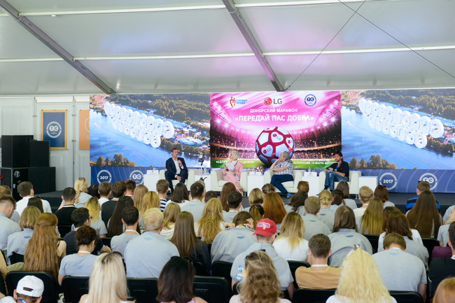 Футбольная донорская акция на форуме «Территория Смыслов», в которой приняли участие более 100 человек, продолжила марафон в поддержку безвозмездного донорства крови #LGПередайПасДобра, приняв эстафету из Казани от Руслана Нигматуллина. Проект стартовал в Минске в марте с футбольной командой «Крумкачы» и был продолжен в апреле совместно с «Эльдорадо» в Москве при поддержке Дениса Глушакова и Артема Реброва. Пас Добра был также передан в Республику Удмуртия, Ижевск, а затем в Москву к футболисту Роману Широкову и Казань. Расширяя донорскую географию, LG проведет футбольные дни донора также в других регионах.