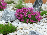 Обычно в основе композиции рокария лежат несколько крупных камней с низкорослыми многолетниками и гравием между ними: