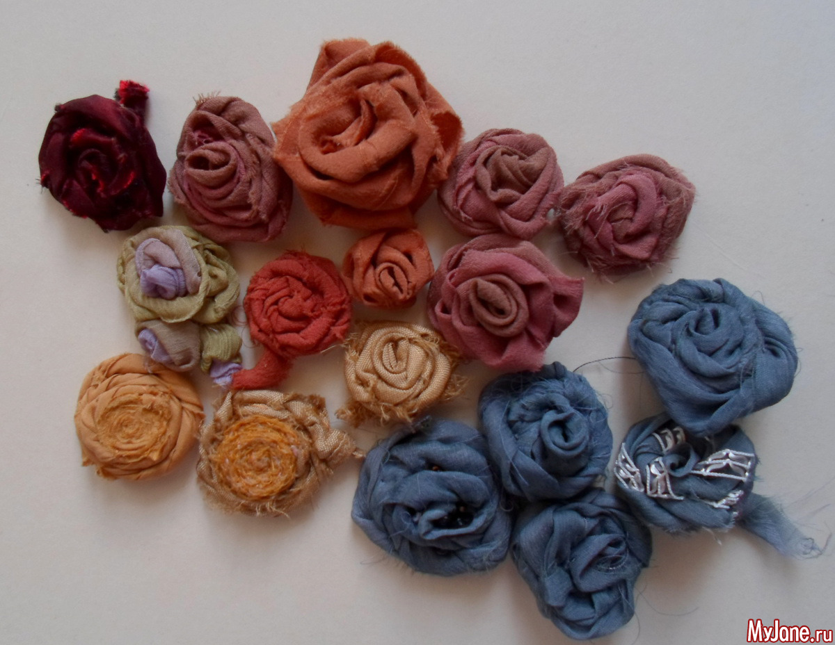 Я увлеклась и накрутила розочек разных оттенков, теперь нужно выбрать самые подходящие друг к другу - по цвету, размеру, форме. Методом "тыка" сложилось несколько композиций, которые и будем впоследствии обыгрывать.