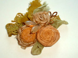 Итак, делаем небольшие броши из лоскутков ткани. На мой взгляд, здесь очень важно качество ткани, я предпочитаю натуральные, но из синтетической ткани тоже получаются интересные броши. Немаловажно подобрать гармонирующие друг с другом оттенки. Учитывая, что мои броши с осенним настроением, я взяла лоскуты соответствующих цветов: кирпичный, рыжий, зеленый, травяной, оливковый, горчичный и так далее. Все элементы в брошах фантазийные, мы не стремимся изготовить копию цветка или листочка, лишь намеки...