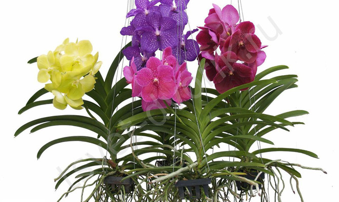 - ванда Сандера имеет как более длинные листья (около 40 см), так и более крупные цветы.