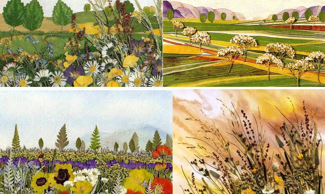 Коллажи из засушенных листьев, трав, злаков