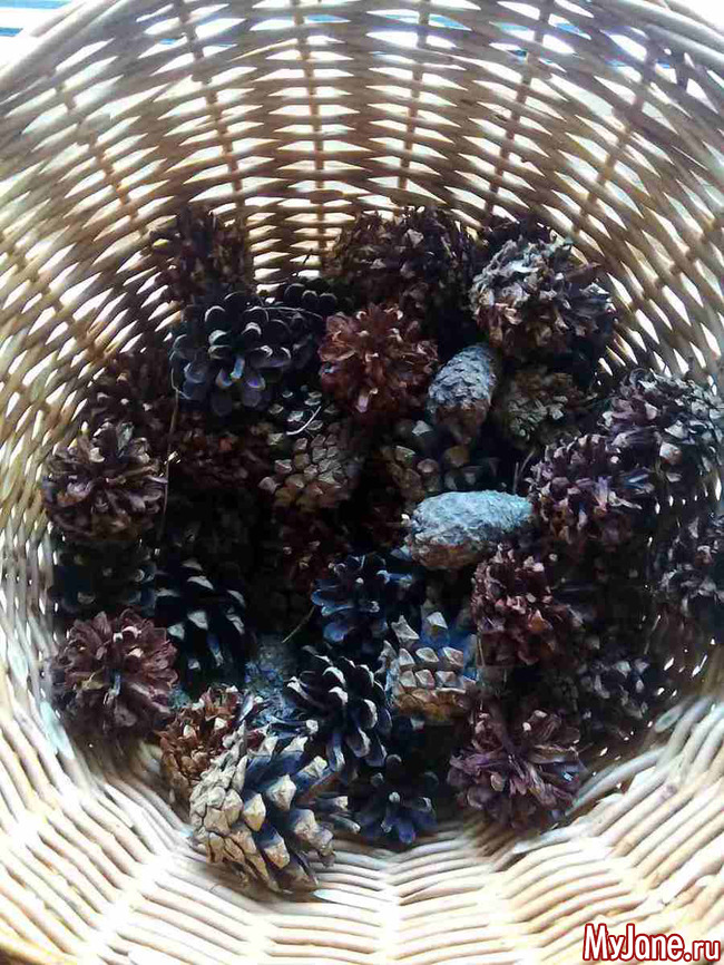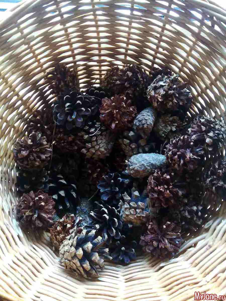 Основа получилась легкая и объёмная. Теперь украшения – впервые буду использовать шишки.