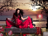 На втором месте по популярности – красный цвет. Он всегда смотрится эротично, поэтому часто используется для вечера. Оттенки красного могут быть как яркими, так и более спокойными.Драпированный лиф, вырез на спине, завышенная талия, летящие линии – все вместе выглядит романтично и женственно.