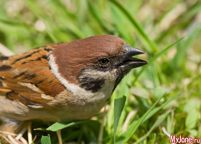 Близкий родственник воробья домового – Полевой воробей – Passer montanus.