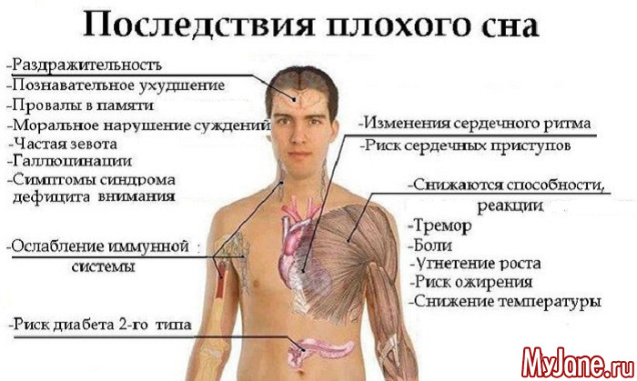кратковременная бессонница вызывает довольно серьезные нарушения вашего нормального самочувствия и способна стать предпосылкой развития достаточно серьезных заболеваний, что отражено на следующем рисунке: