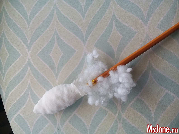 Заполняем стебли и бутоны наполнителем, у меня вот такой специальный синтепон,
