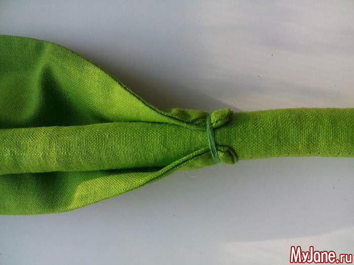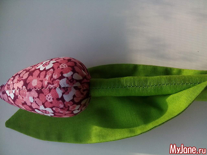 который присобираем у основания. Листок к стеблю закрепила просто ниткой в тон.