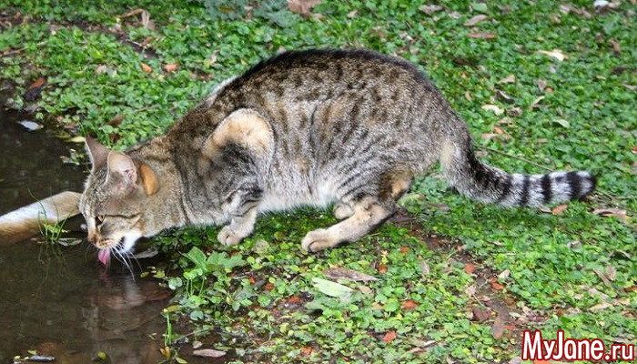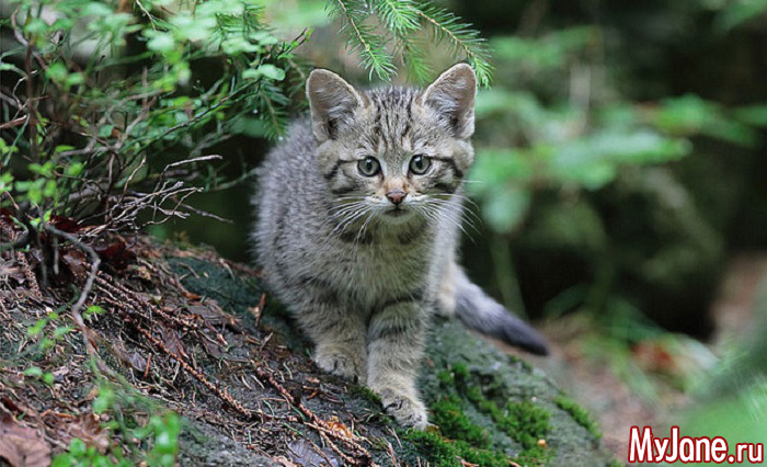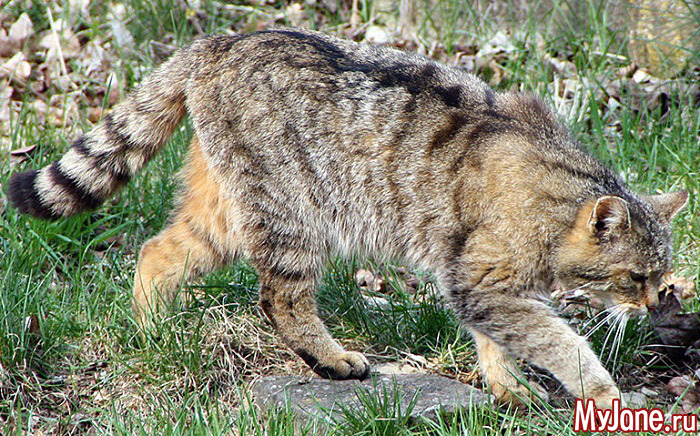 Вполне обычный на вид, уютный «домашний» полосатик, не так ли? Заставить усомниться в этом могут лишь характерные черные «кольца» на хвосте животного, размер, несколько крупнее чем у среднестатистической домашней кошки, да встреча с ним в непролазной глуши, на расстоянии многих километров от человеческого жилья. Это дикий лесной кот, прямой предок всех домашних кошек, не зависимо от внешнего вида или породы!