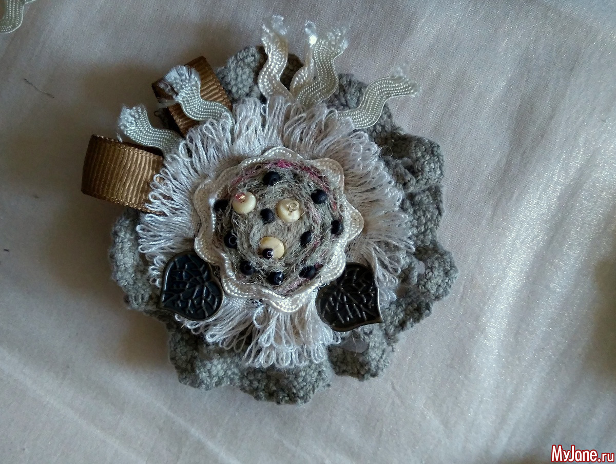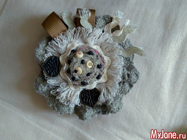 Я не размещаю в начале фото материалов, которые понадобились в процессе изготовления броши потому, что брошь сочинялась по ходу дела из целого вороха лоскутков, обрезков, тесемок и ленточек...