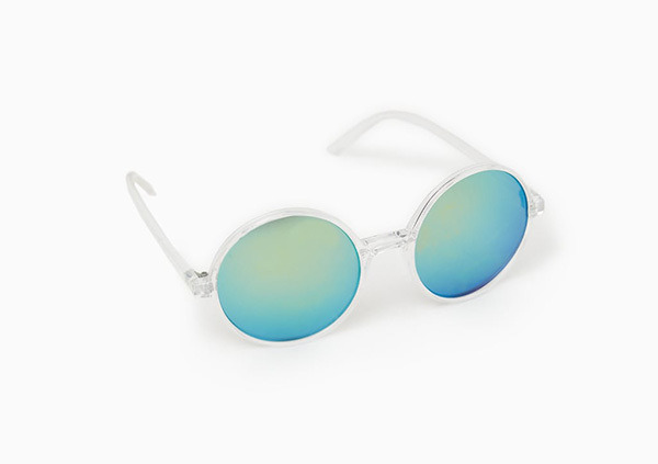 Линзы нежных тонов выглядят женственно и очень украшают лицо. Здесь преобладают розовые, голубые, бирюзовые, сиреневые и желтые тона. Конечно, от знойного южного солнца они не защитят, но для ношения в городе хорошо подходят, так как смягчают и рассеивают солнечный цвет.Ниже вы видите круглые очки с бирюзовыми стеклами, в узкой белой оправе.
