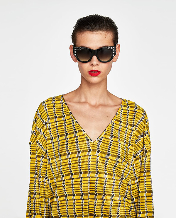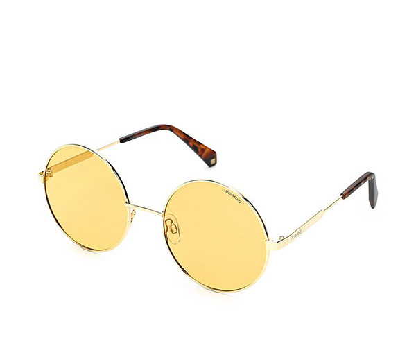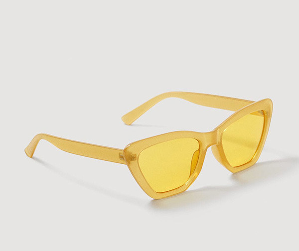 Здесь линзы тоже желтые, при этом цвет оправы повторяет оттенок стекол. Форма оправы вытянута к вискам, она до сих пор актуальна.