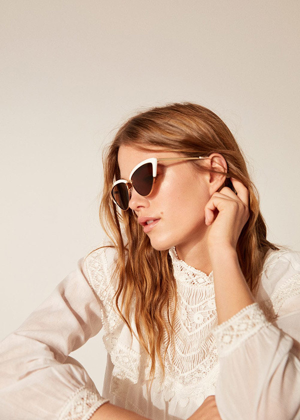 А здесь линзы нежно-сиреневого тона дополнены белой перламутровой оправой, которая подчеркивает нежность и женственность образа.