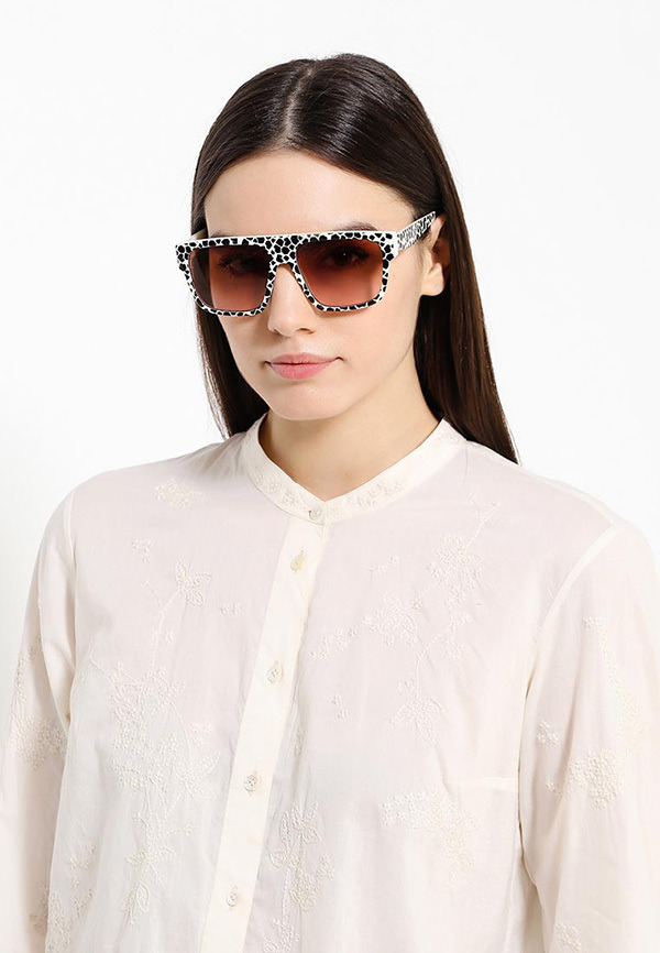 В моделях, представленных ниже, форма бабочки (или кошачьего глаза) выражена еще более явственно.Огромные очки в широкой светлой перламутровой оправе. Обратите внимание на полупрозрачные стекла. Такие очки делают образ стильным и загадочным.
