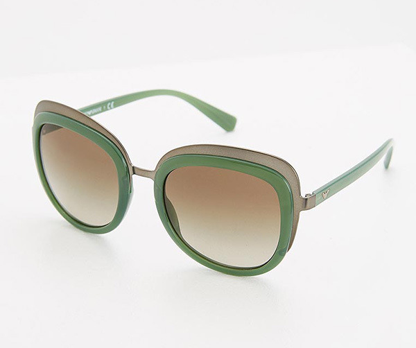 Актуальны двухцветные, как бы двойные оправы, как та, что представлена ниже. Сочетание мягкого зеленого цвета с серым выглядит элегантно и интеллигентно.