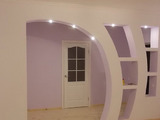 Для арочных конструкций в квартирах чаще всего используются:• гипсокартон — наиболее удобен, практичен и экономичен;