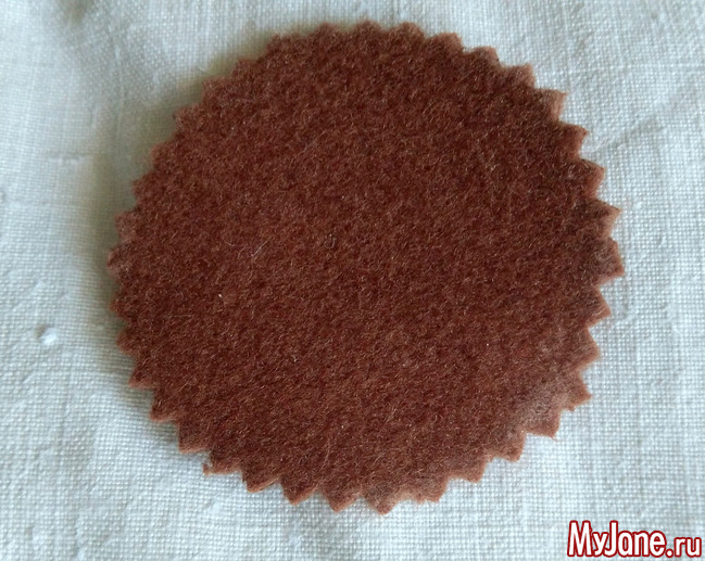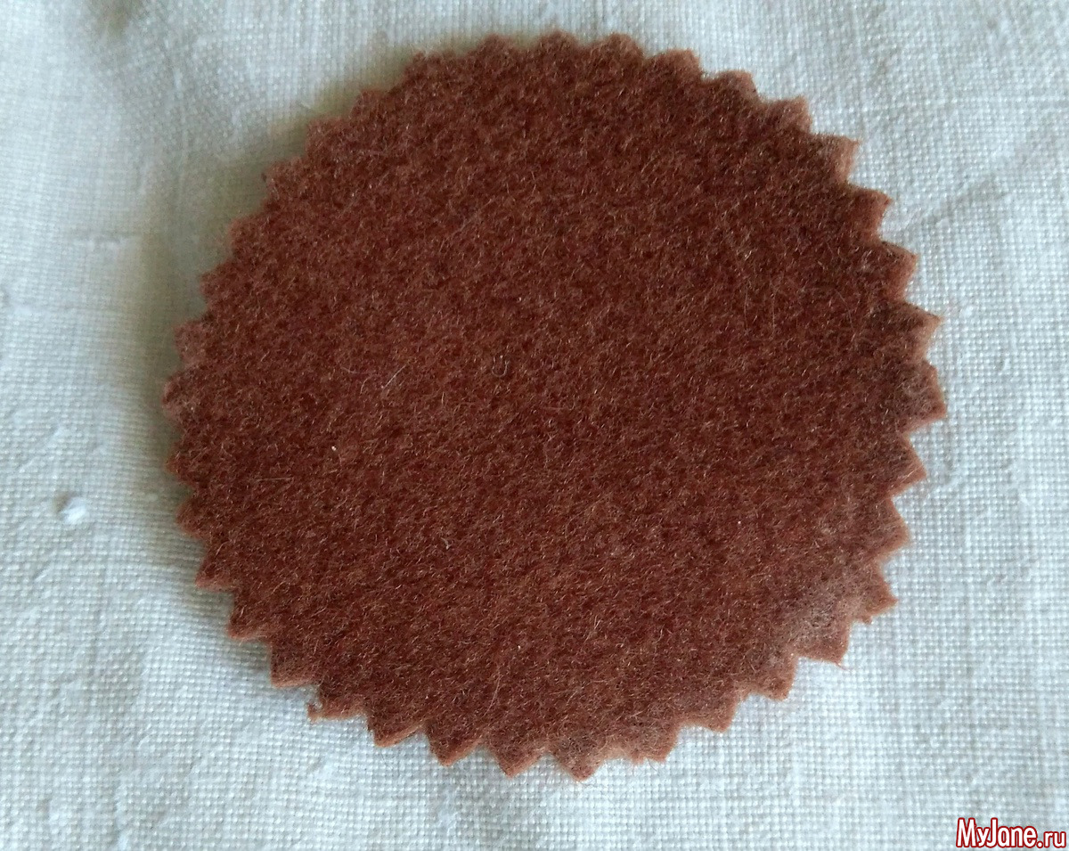 1. Из кусочка драпа или фетра вырезаем круг-основу нужного размера. В качестве шаблона можно использовать крышку от какой-либо баночки.