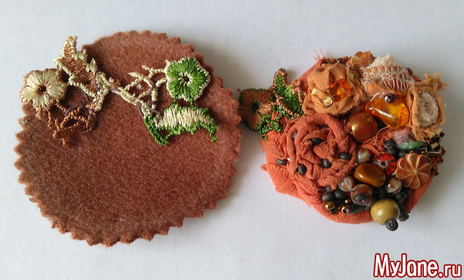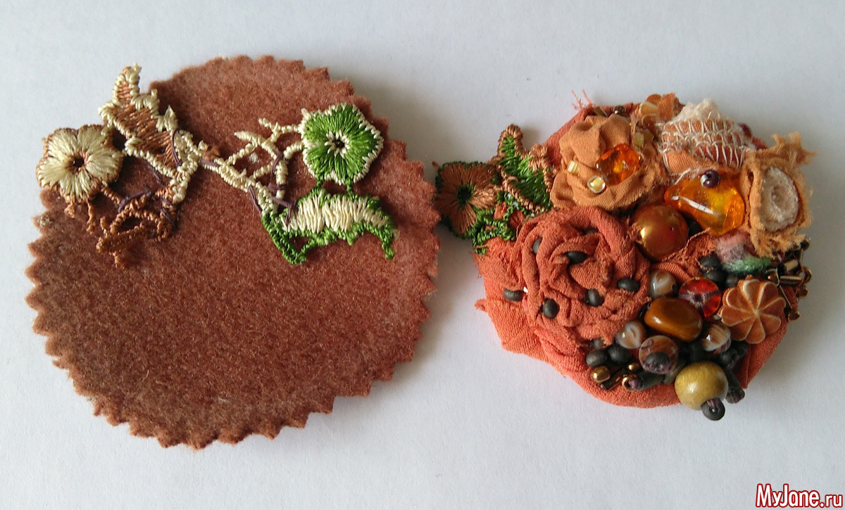 Вот она - брошь "пицца". Если пришить к изнанке петельку и протянуть через неё шнур, то брошь превратится в кулон.